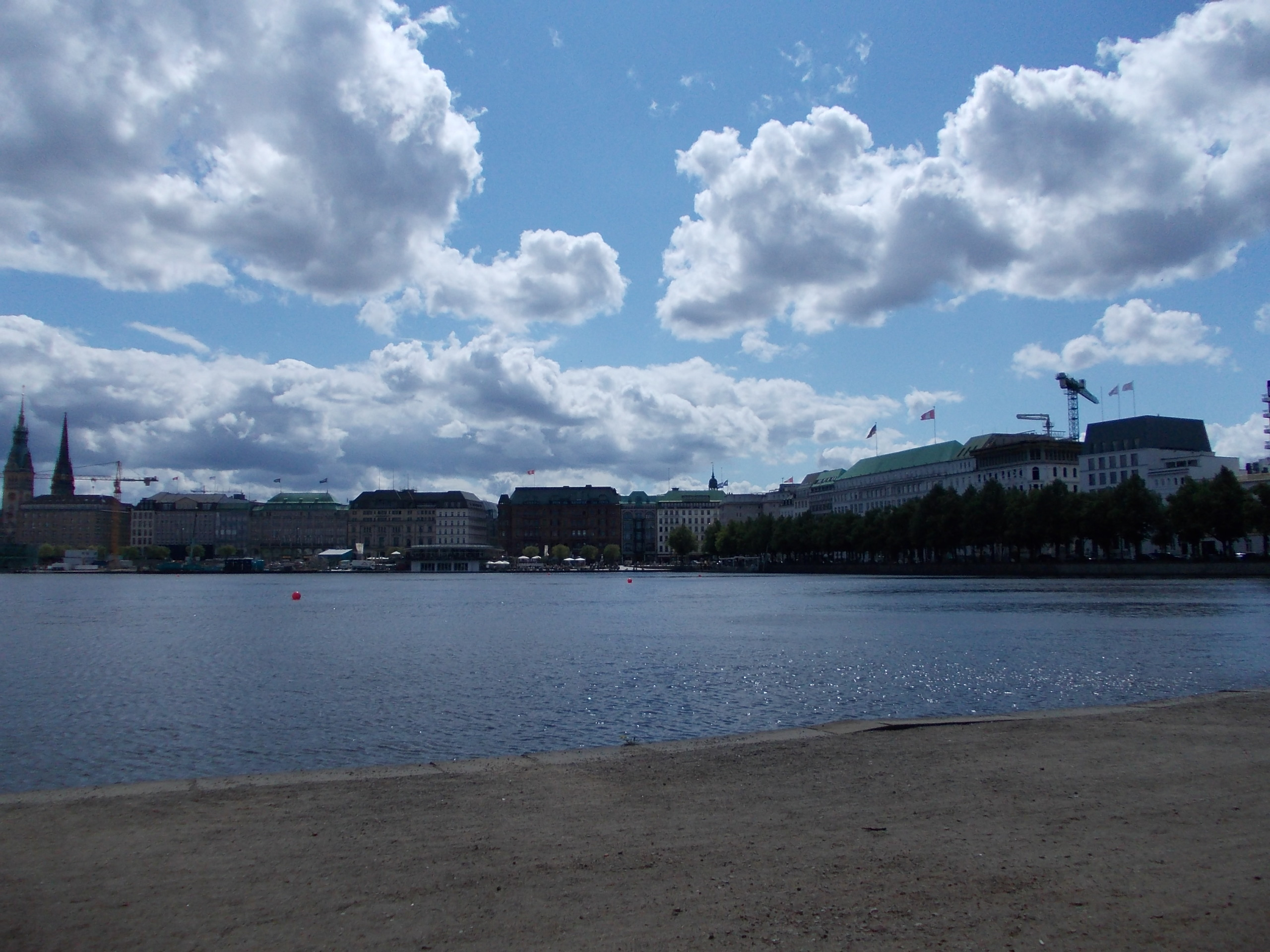 Bei der Lombardsbrücke kann man unten an der Alster lang laufen. Die Stadt hat dort Grünflächen mit Bäumen, Sandwegen und vielen Bänken erhalten oder geschaffen. Ein Traumhafter Blick von dort auf das Rathaus. Auf der anderen Seite ging’s zurück und irgendwie meinte es mein MP3-Player mal richtig gut mit mir. Trotz Zufallsreihenfolge hört ich: