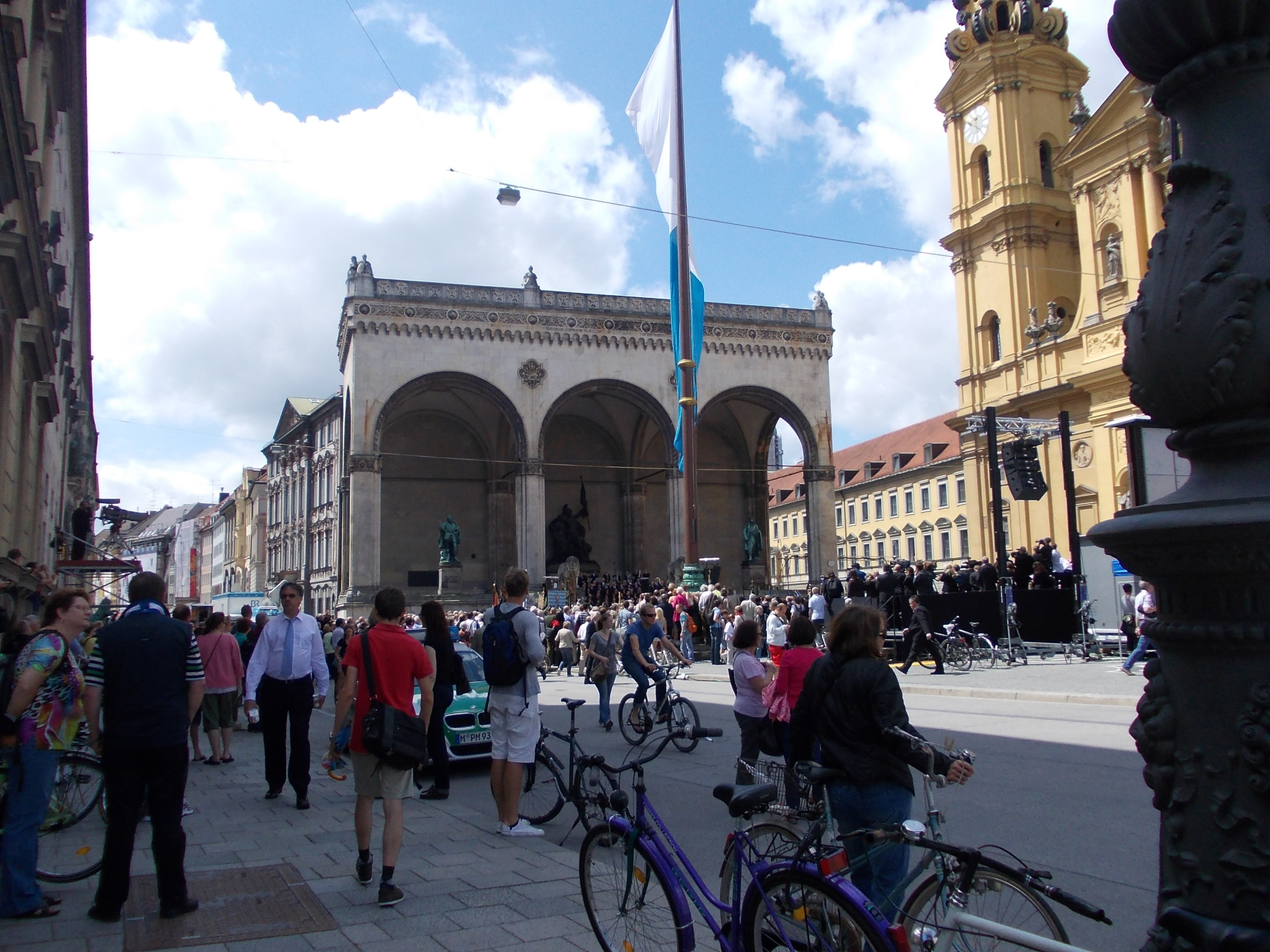 Von dort bis zum Odeonsplatz war es dann nur ein Katzensprung. Mit einer riesigen Schale Blaubeeren von einem der diversen Obstständen, die die Straße säumten ging es vorbei am Wittelsbacher Platz mit einem wunderschönen Reiterstandbild von Kurfürst Maximilian I.