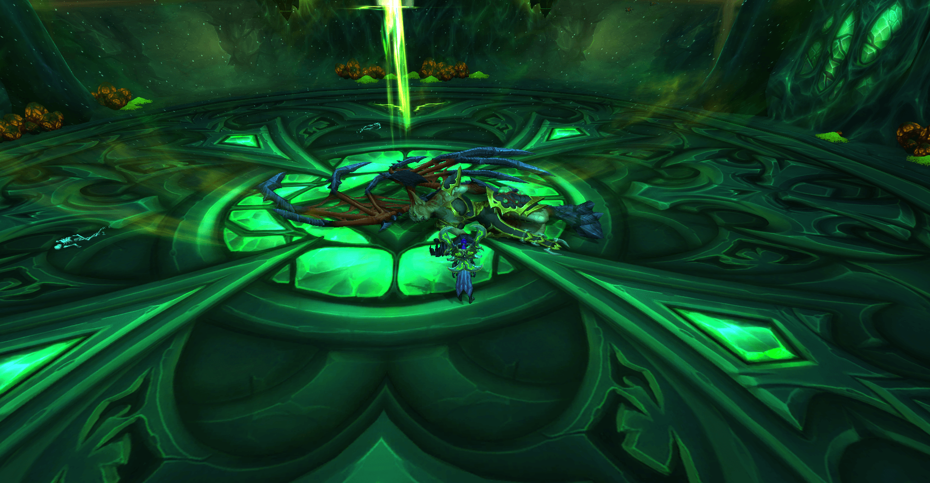 Leider bringt uns der Schlüsselstein nicht viel. Wir übergeben ihn Kayn Sonnenzorn aktivieren das Portal, springen durch und werden in einer grünen Suppe eingesperrt für Jahre … bis die Legion das Verlies auf den Verheerenden Inseln angreift. Unsere Gefängniswächterin Maiev Schattensang befreit uns und wir unsere alten Verbündeten: Altrius der Leidende und Kayn Sonnenzorn.